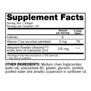 • Công thức Ubiquinol được cấp bằng sáng chế, tan trong nước và chất béo giúp hấp thu vượt trội