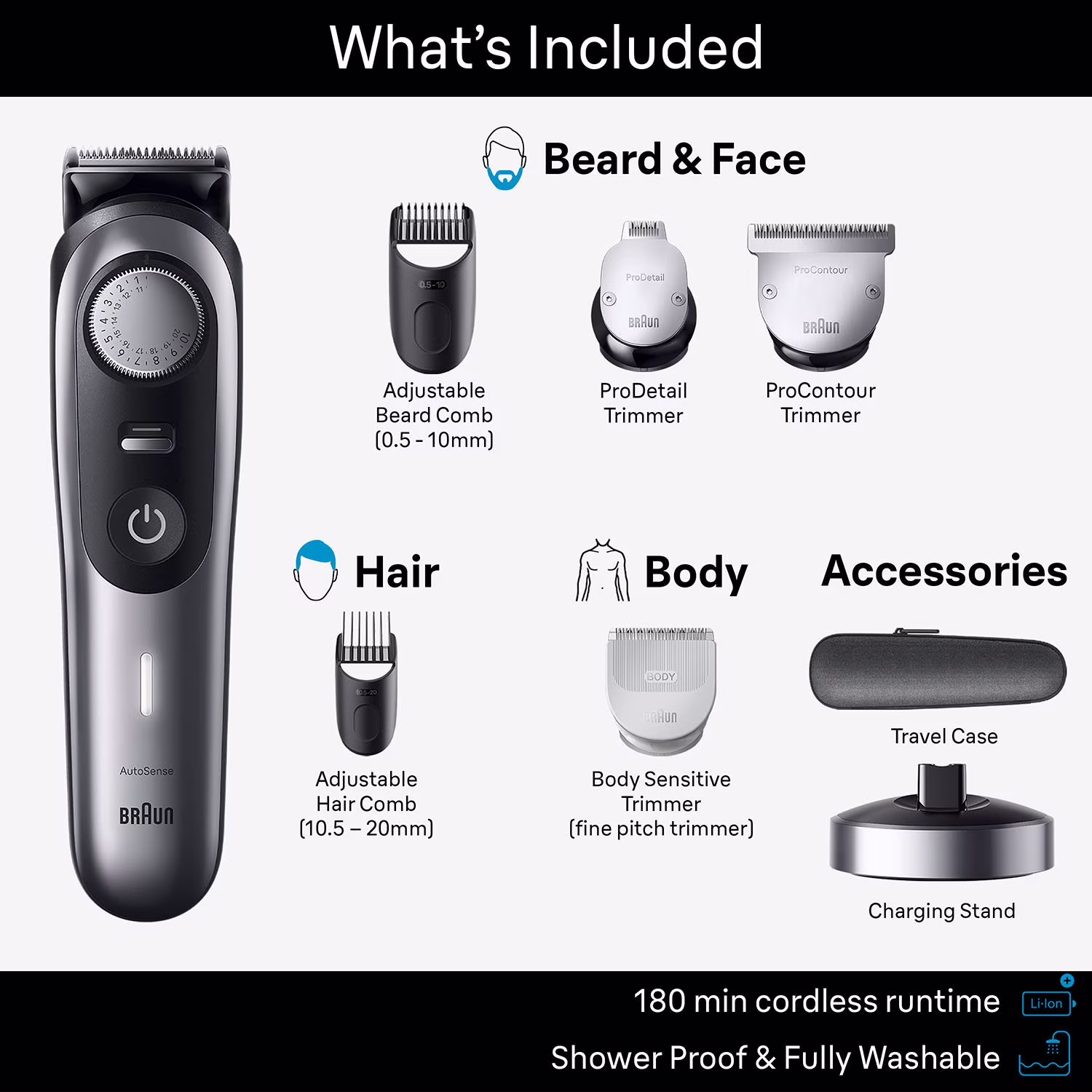 Braun Series 9 All-In-One là bộ 8-in-1 được thiết kế để mang lại sự linh hoạt tối đa và độ chính xác chuyên nghiệp ngay tại nhà.