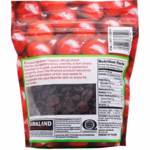 Cherry chua sấy khô hữu cơ Kirkland Signature Montmorency là sản phẩm cao cấp đạt chuẩn USDA Organic và Kosher. Được làm từ giống cherry Montmorency nổi tiếng với vị chua thanh đặc trưng, sản phẩm mang đến hương vị tự nhiên và giàu dinh dưỡng. Đóng gói túi 1 lb 0,567kg có khóa zip tiện lợi, dễ bảo quản và sử dụng lâu dài.