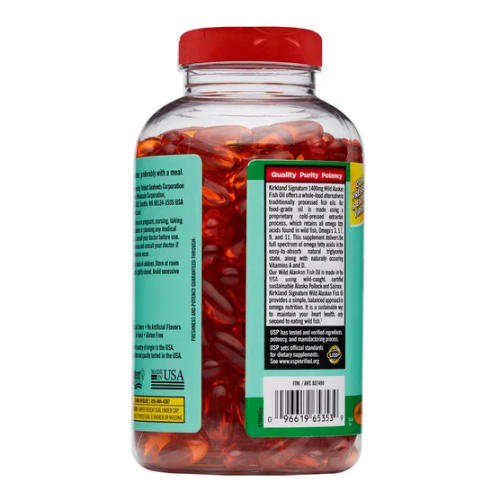 Kirkland Signature Wild Alaskan Fish Oil 1400mg là dầu cá tự nhiên được chiết xuất bằng công nghệ ép lạnh từ cá Pollock và cá hồi hoang dã Alaska, giúp giữ nguyên cấu trúc triglyceride (nTG) và dưỡng chất như trong cá tươi. Sản phẩm cung cấp nguồn omega toàn diện, tinh khiết, hỗ trợ sức khỏe tim mạch và cơ thể một cách an toàn, hiệu quả.