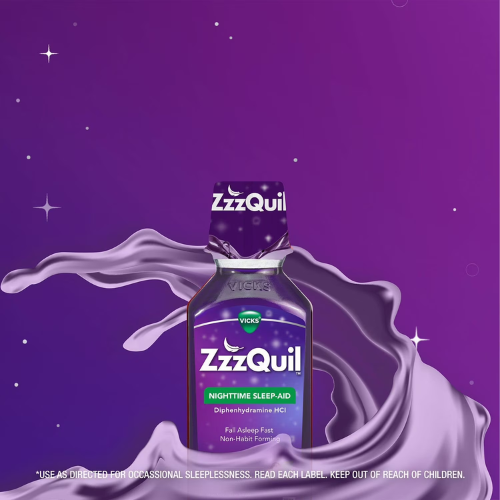 ZzzQuil chứa hoạt chất Diphenhydramine HCl (50 mg/ liều 30 mL) – một thành phần không gây lệ thuộc khi sử dụng đúng liều. Hoạt chất này hoạt động bằng cách ức chế histamine, một chất trong não liên quan đến trạng thái tỉnh táo, từ đó giúp tạo cảm giác buồn ngủ tự nhiên và dễ ngủ hơn.