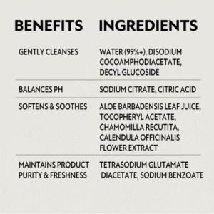 Công thức không mùi, không chứa các chất gây hại như cồn, paraben, chlorine, thuốc nhuộm hay hương liệu, giúp hạn chế tối đa nguy cơ kích ứng. Sản phẩm còn được bổ sung các thành phần dưỡng da như nha đam, vitamin E, chiết xuất hoa cúc và hoa cúc kim tiền, giúp da bé luôn mềm mại và khỏe mạnh.