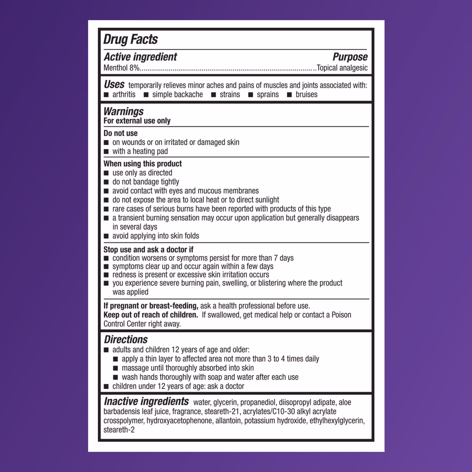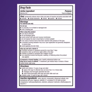 - Menthol 8% (giảm đau, tạo cảm giác mát lạnh)