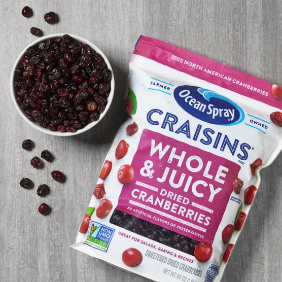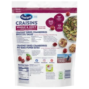 Nam việt quất sấy khô Ocean Spray Craisins, nguyên quả là lựa chọn tiện lợi giúp bữa ăn và bữa phụ thêm phong phú, dễ dùng mỗi ngày.