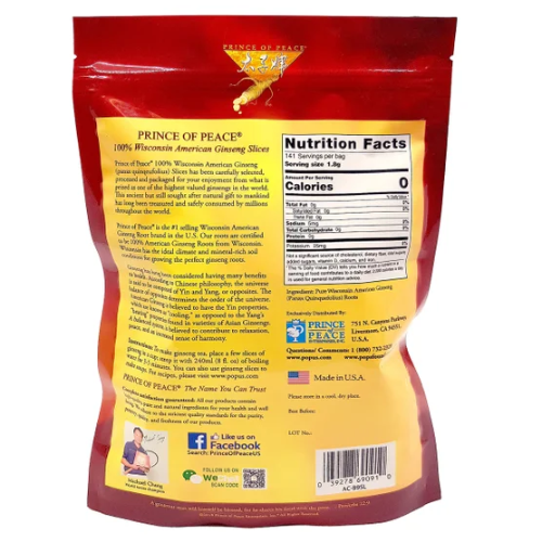 Prince of Peace 100% Wisconsin American Ginseng Root Slices – Nhân sâm Mỹ lát khô (9 oz)