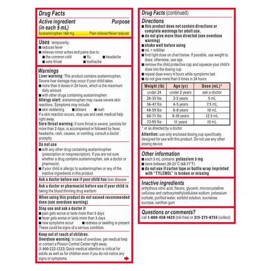 SET 3 chai Thuốc giảm đau và hạ sốt dạng lỏng Tylenol dành cho trẻ em, hương vị anh đào