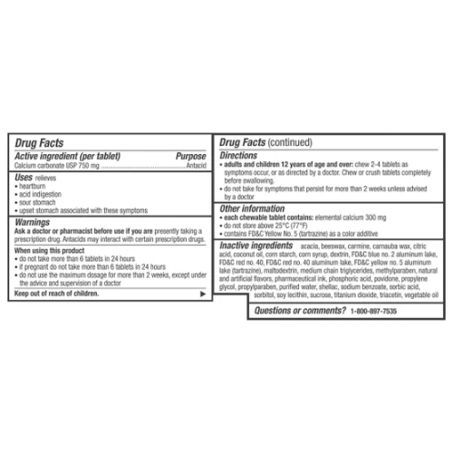 Canxi carbonate 750 mg: Có tác dụng trung hòa axit dạ dày, giảm ợ nóng và hỗ trợ xương khỏe.
