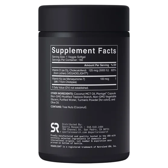 Viên nang mềm chay Vitamin D3+K2 PlantGel™ của Sports Research ®