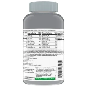 Thành phần: Canxi cacbonat, Kali clorua, Axit ascorbic (Vitamin C), Canxi photphat dibasic, Magie oxit, Cellulose vi tinh thể, DL-alpha Tocopheryl axetat (Vitamin E), Maltodextrin, Kẽm oxit. Chứa <2%: Beta-Carotene, Biotin, Blue 2 Lake, Calcium Pantothenate (Vitamin B5), Cholecalciferol (Vitamin D3), Chromium Picolinate, Copper Sulfate, Crospovidone, Cyanocobalamin (Vitamin B12), Axit Folic, Hypromellose, Magnesium Stearate, Manganese Sulfate, Triglyceride chuỗi trung bình, Niacinamide, Phytonadione (Vitamin K), Polydextrose, Potassium Iodide, Pyridoxine Hydrochloride (Vitamin B6), Red 40 Lake, Riboflavin (Vitamin B2), Silicon Dioxide, Sodium Molybdate, Sodium Selenate, Talc, Thiamine Mononitrate (Vitamin B1), Titanium Dioxide, Vitamin A Acetate, Yellow 6 Lake.