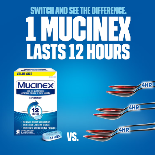 Viên uống Mucinex giúp làm loãng và long đờm, hỗ trợ giảm nghẹt ngực hiệu quả