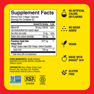 Viên Uống Giấm Táo Bragg Apple Cider Vinegar Supplement Capsules – Hộp 180 Viên