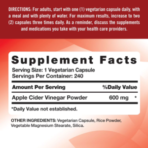 Apple Cider Vinegar 600 mg trong mỗi viên nang.