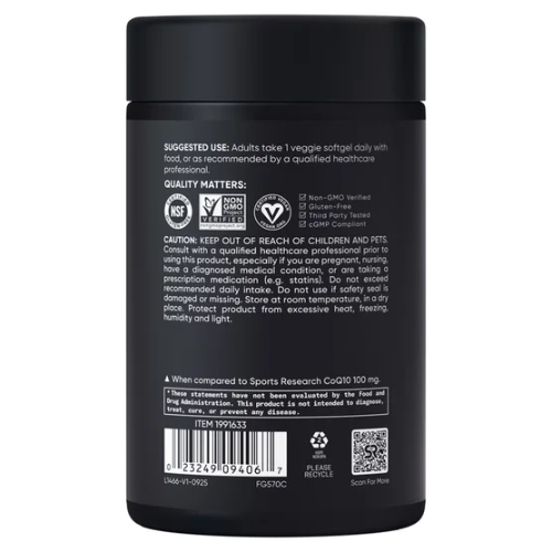 Sports Research CoQ10 200 mg là giải pháp bổ sung CoQ10 tiện lợi, giúp hỗ trợ sức khỏe tim mạch và duy trì nguồn năng lượng ổn định cho cơ thể mỗi ngày.
